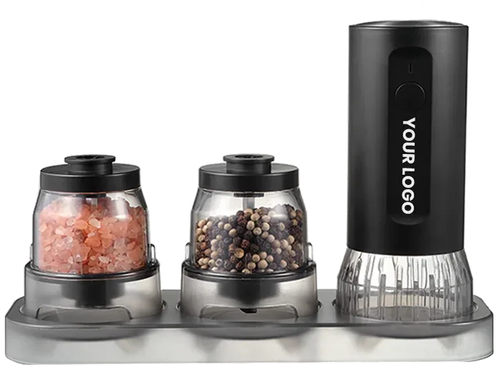 El producto principal del molinillo de sal y pimienta incluye modelos eléctricos y manuales fabricados con diferentes materiales: acero inoxidable, acrílico, madera, bambú, ABS y cerámica. Los productos tienen certificados LFGB, FDA, ROHS, CE, SGS.
