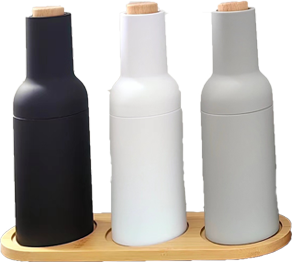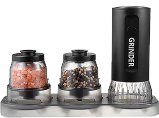 El producto principal del molinillo de sal y pimienta incluye modelos eléctricos y manuales fabricados con diferentes materiales: acero inoxidable, acrílico, madera, bambú, ABS y cerámica. Los productos tienen certificados LFGB, FDA, ROHS, CE, SGS.