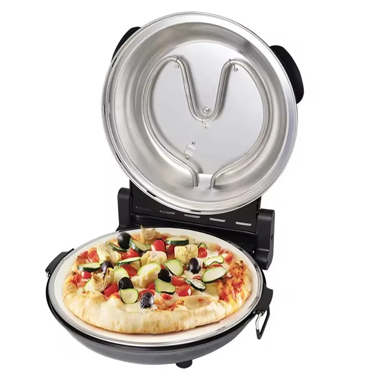 Transforme su cocina en una pizzería rápida y eficiente con la pizzera de encimera de 1200 W. Este horno de pizza de piedra de calidad profesional está diseñado para cocineros caseros que exigen resultados auténticos sin esperas. Ya sea que sea un entusiasta de la gastronomía que necesite un almuerzo gourmet rápido o que esté organizando una fiesta animada donde es necesario servir pizza fresca y caliente continuamente, esta máquina entrega una pizza perfecta y crujiente en solo 3 a 5 minutos. Es el electrodoméstico definitivo para los amantes de la pizza que buscan calidad profesional y comodidad en el hogar.