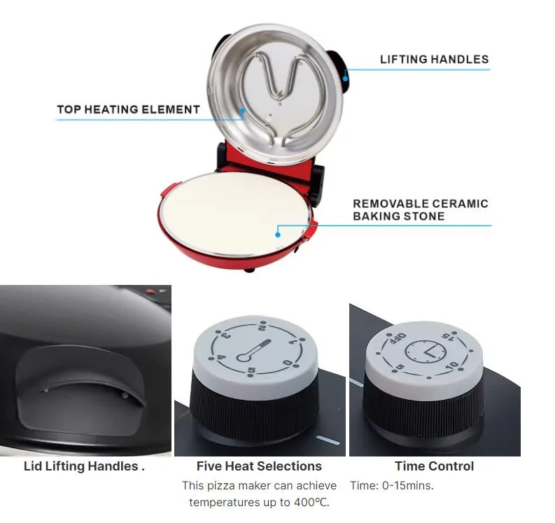 Cocción increíblemente rápida de 3 a 5 minutos: Desarrollado por 1200W, alcanza la temperatura óptima rápidamente, cocinando una pizza perfecta en solo minutos.