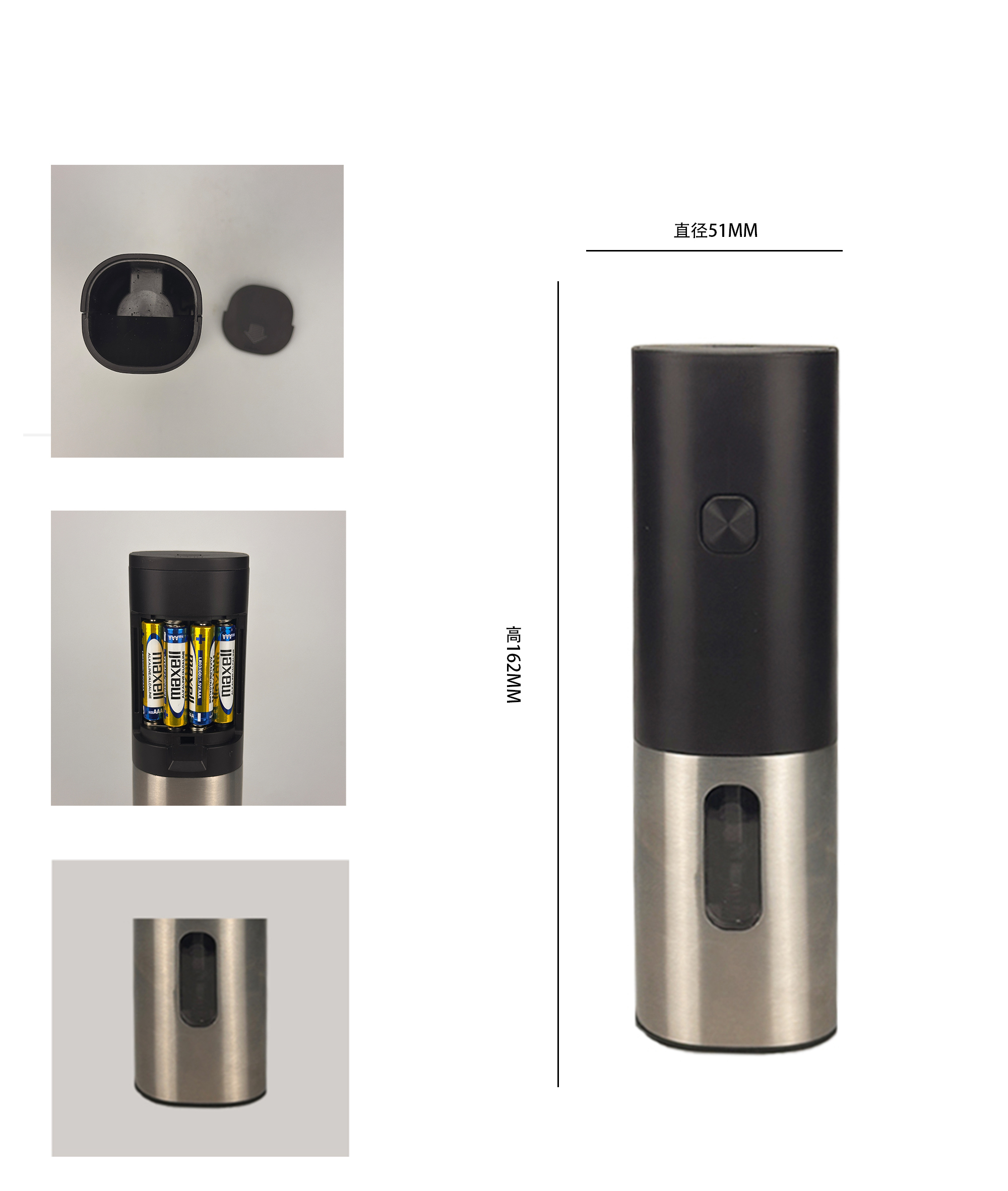 | DESCRIPCIÓN: | Molinillo de pimienta eléctrico de acero inoxidable con luz. |