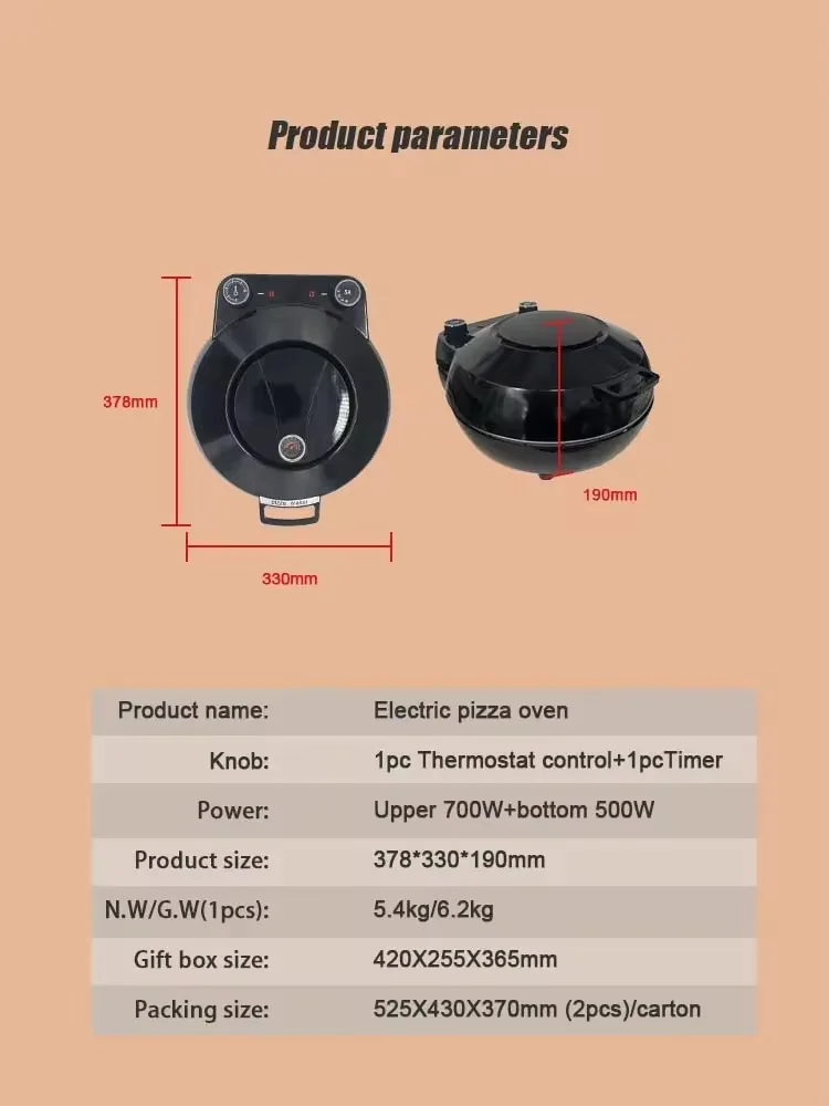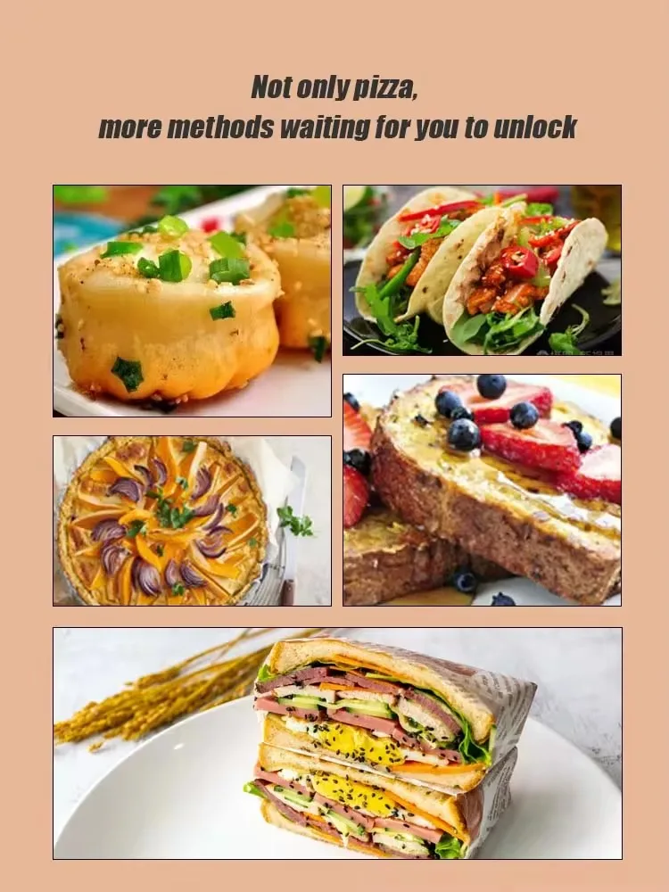 Versátil más allá de la pizza: Más que un simple horno para pizzas. Úselo para hornear pan artesanal, calentar pasteles, cocinar verduras o recalentar las sobras para restaurar su textura crujiente. Es un minihorno versátil para innumerables creaciones de cocina.