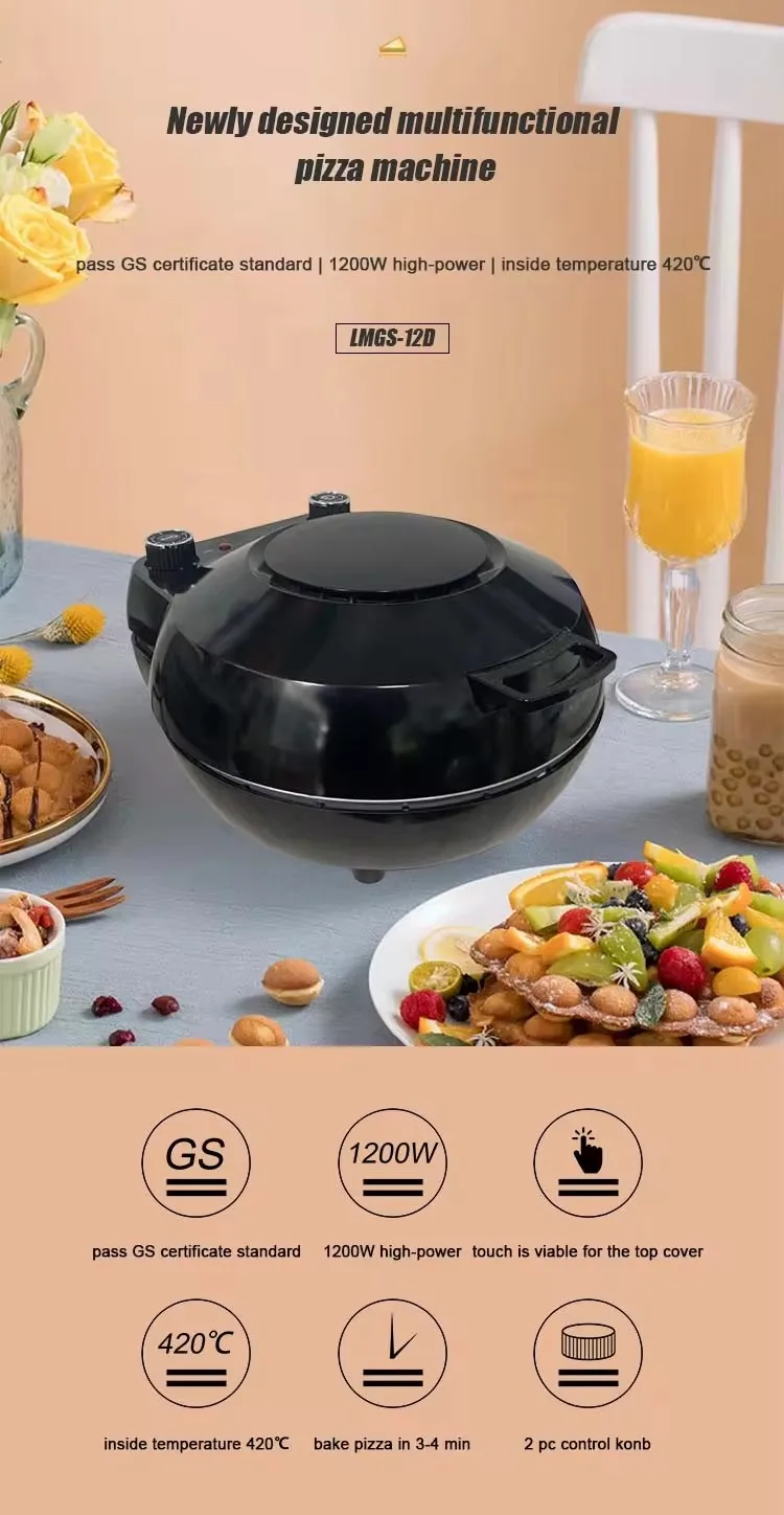 Diseño compacto de encimera de 12 pulgadas: Se adapta perfectamente a cualquier encimera de cocina, mesa o espacio pequeño. A pesar de su pequeño tamaño, hornea una generosa pizza de 12 pulgadas, ideal para servir a 2 o 3 personas o preparar una comida gourmet personal.