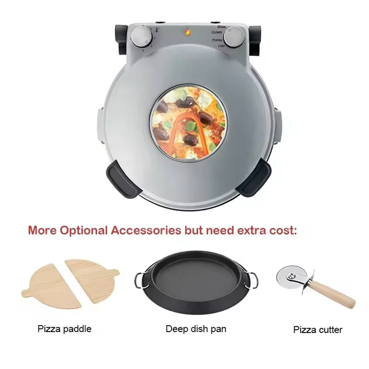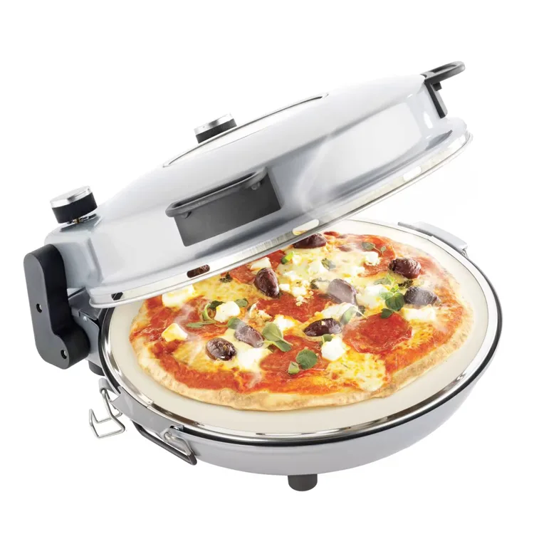 Hornee una pizza casera perfecta con facilidad utilizando nuestra pizzera eléctrica repleta de funciones. Diseñado para ofrecer comodidad y precisión, este horno de encimera combina un control profesional con una fácil limpieza. La ventana de visualización y el termómetro incorporados le permiten controlar el progreso de su pizza sin conjeturas, mientras que las superficies antiadherentes de fácil limpieza hacen que disfrutar de una comida deliciosa sea tan simple como la limpieza siguiente. Es la opción inteligente para noches de pizza que son divertidas y sin complicaciones.